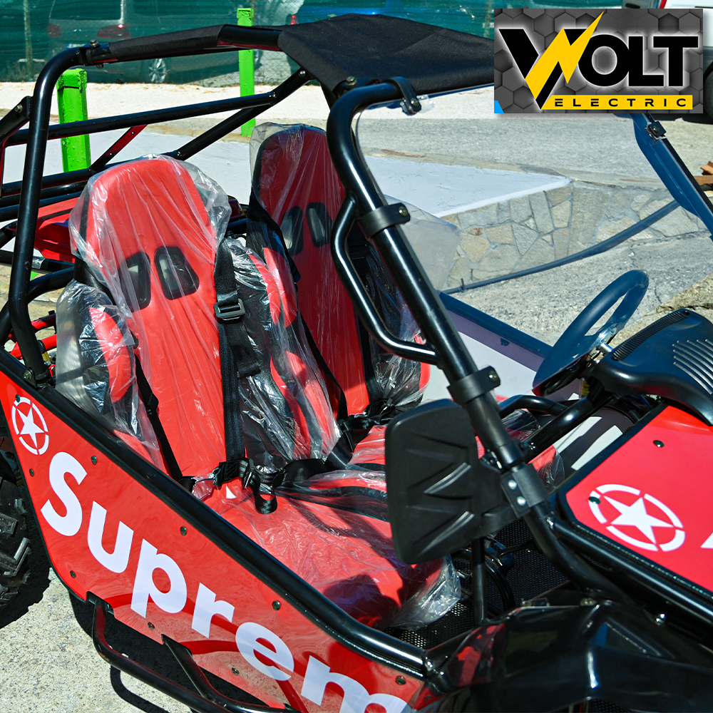 Нов модел бензиново UTV Max Motors SUPREME 200cc. Разполага с уникални LED фарове, които осигуряват супер видимост при нощно каране. UTV-то е високо проходимо и преудолява доста стръмни терени и препятствия. Машината Ви предлага качество и удобство на дълги и къси разстояния. Снабдено е с автоматична трансмисия, което предполага че може да се ползва както от възрастни, така и от деца.