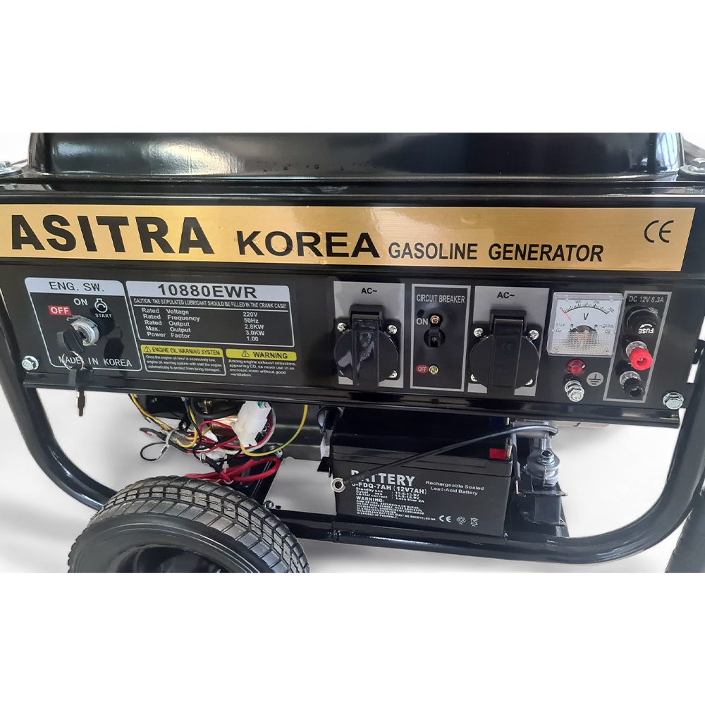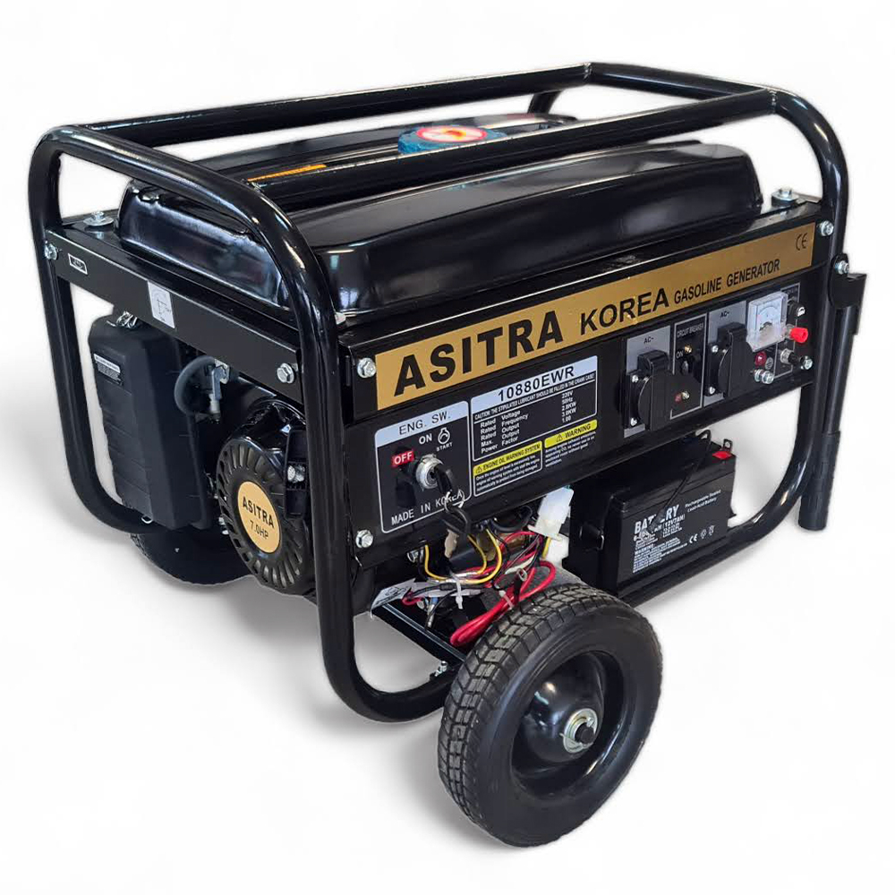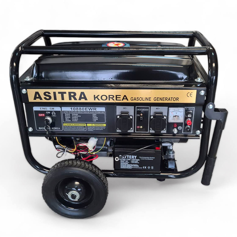 Бензинови четиритактови генератори ASITRA за монофазен ток с максимално замерена мощност 3.5KW. Без аналог на пазара спрямо качество и цена. Електрически стартер, безконтактно палене, дистанционно управление.
