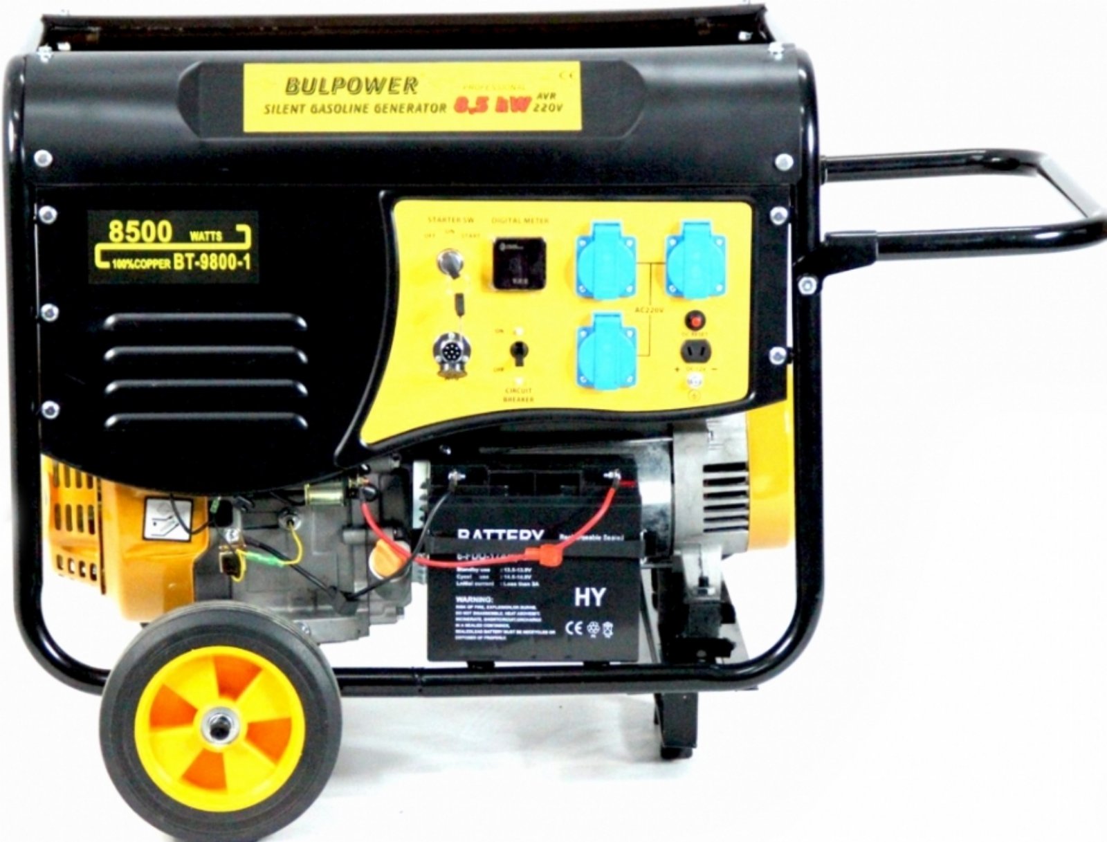 Предлагаме на Вашето внимание, бензинови дигитални, четиритактови генератори Bulpower за климатици, помпи, компресори и други. Дигитален дисплей – показващ отработените часове, волтаж, ампераж и херцове. Трифазен ток, максимално замерена мощност от 8,5 KW, постоянно замерена мощност- 7.5 kW. Материал: ротор-статор 100% мед. Въздушно охлаждане. Двигател: GX 560- 13 конски сили, работна честота: 50 Hz. Резервоар: 25 литра. Датчик за маслото. Масло двигател: 1 литър. Генератори Bulpower имат възможност за: автоматично стартиране (спиране) на генератора при отпадане (възстановяване) на основното ел. захранване – гарантирано безотказно и без никаква човешка намеса. Вграден AVR – вградена платка за автоматично регулиране и стабилизиране на напрежението. Автоматичен предпазител против претоварване на генератора. Магнетен стартер, акумулатор, транспортна рамка с колела и дръжки за по-лесно предвижване на генератора. Има 3 броя изходи за 220V един за 380V и още един за 12V. Нивото на шума е 69-72 dB. Размерите му са: дължина 68 см., ширина 51 см. и височина 55 см. Тегло 90 кг. Гаранция: 24 месеца. Гаранционно и следгаранционно обслужване.