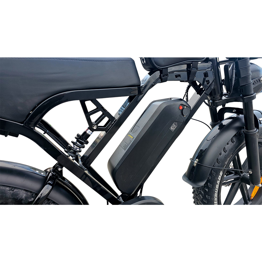 Двуместен електрически велосипед FAT BIKE с 20″ големи OFFROAD гуми. Подходящ както за градски условия, така и за по- пресечени и труднопроходими терени.