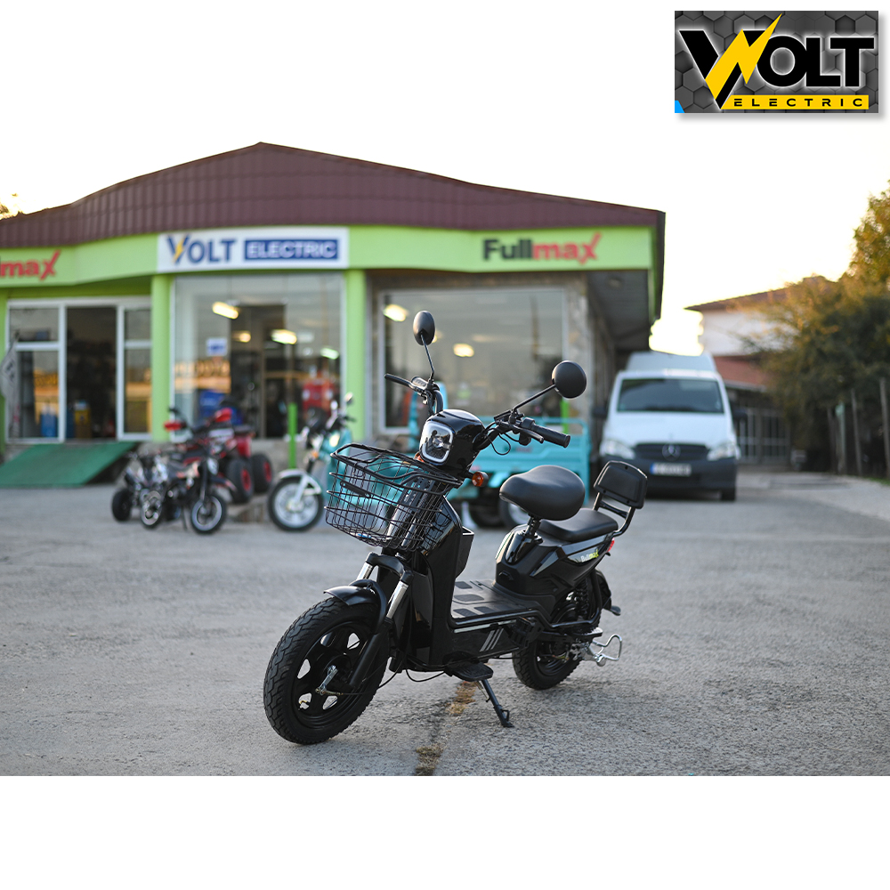 Двуместен електрически скутер велосипед с педали BULLMAX BUZZ 16″ джанти, 750W, 12Ah, черен лак