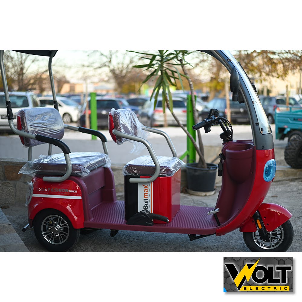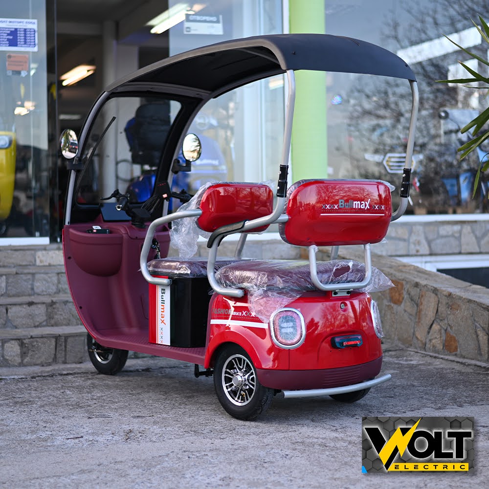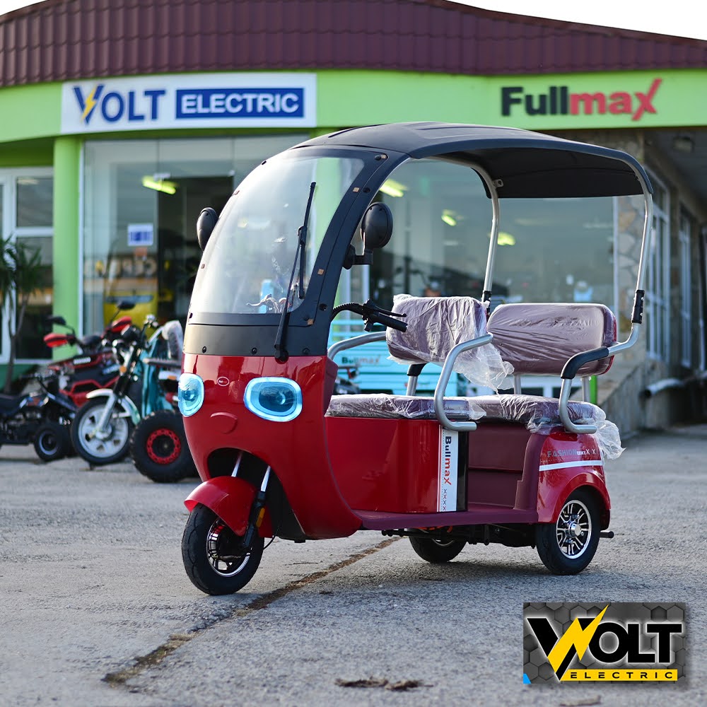 BULLMAX CRUIZER 1800W е двуместна електрическа триколка с покрив, която лесно се превръща в товарна cargo триколка.