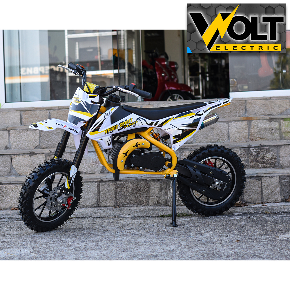 Детски бензинов кросов мотор Max Motors ORION с двутактов двигател с капацитет 49 кубика. Подходящо за деца от 3 до 8 годишна възраст, макс. тегло- 30-32 кг.) Нови, налични на склад, с гаранция.