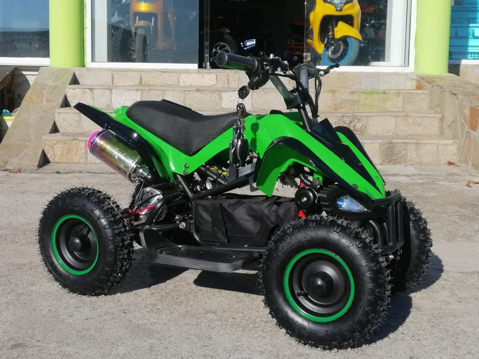 Като мощност се равнява на бензиновоATV от 49 кубика. Лесно за поддръжка и каране дори от по-малки деца.