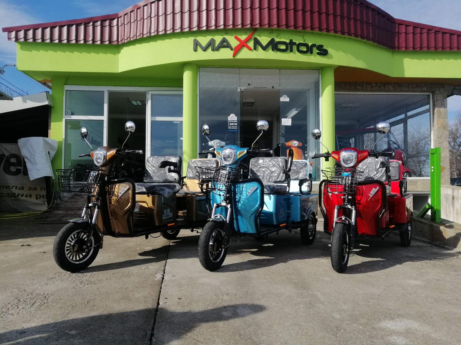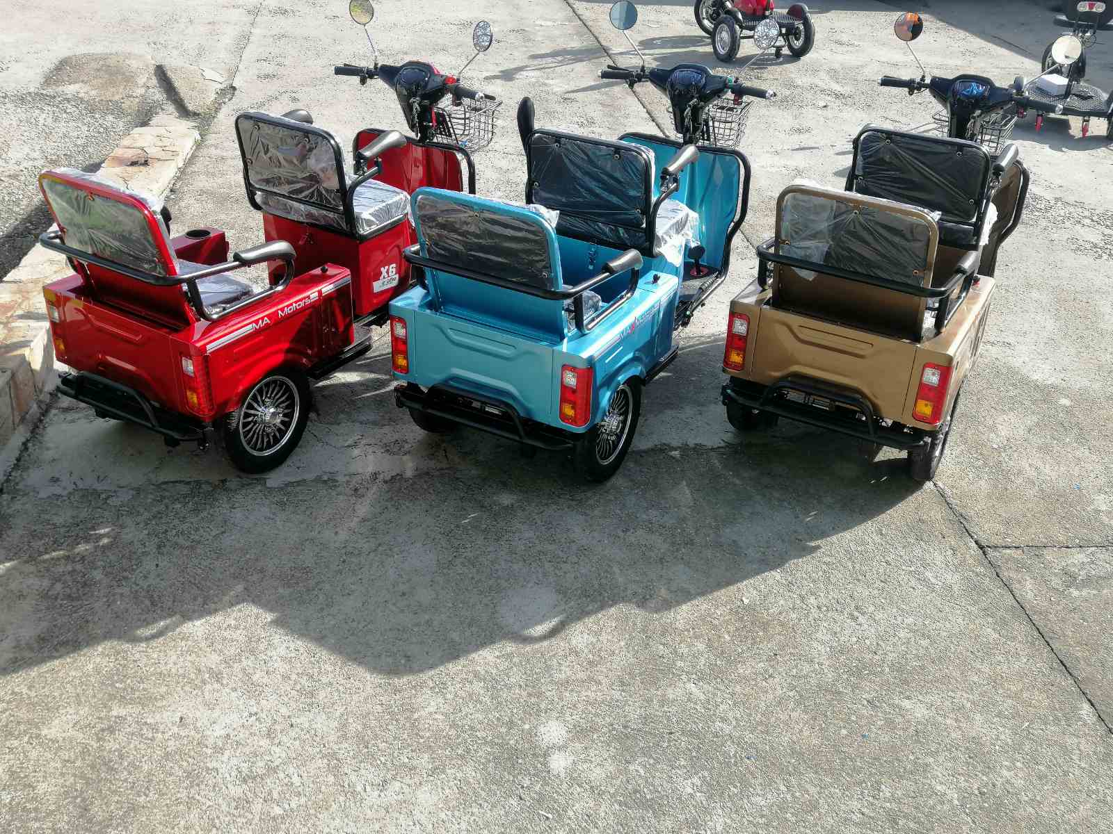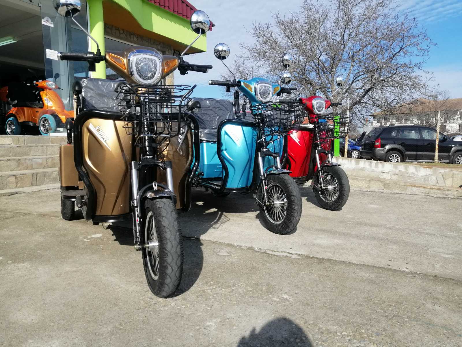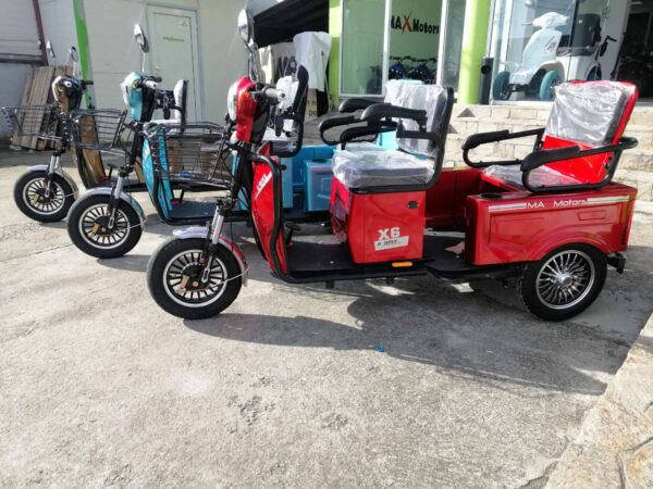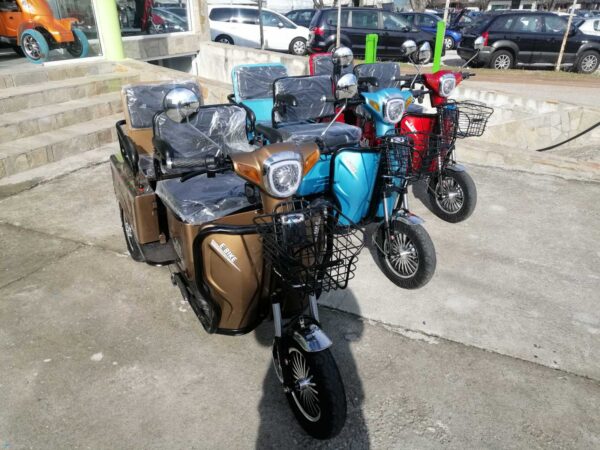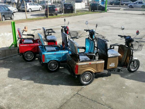 Най-новите модели предлагани на пазара. Електрическа триколка 1500 вата 48 волта подходяща за възрастни и трудно подвижни хора .Развива 40км.ч. и изминава около 60км в зависимост от терена и натоварването. Двуместна. Три скорости, огледала, мигачи, стоп, габарит, амортисьори, задна скорост. Задната седалка се обръща и става багажник.