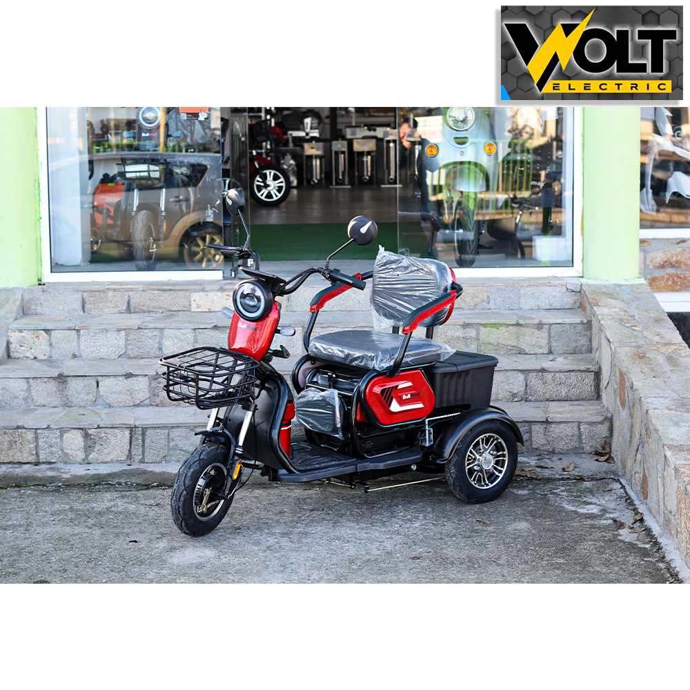 *Този модел има възможност за добавяне на покривна конструкция с предно стъкло и чистачка на ст-ст +249лв! При закупуване подарък страници, за да можете да използвате триколката при дъжд, сняг или студено време!