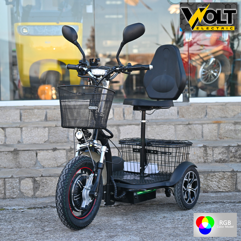 Удобна и стабилна при завои поради удължената задна ос от гума до гума 68 см. Широка и удобна платформа за краката, мощна, с удобна седалка с облегалка, дисплей за нивото на батерията и крачна спирачка. Втори, допълнителен дисплей с показания за скорост, изминато разстояние и др. Голям предна пазарска кошница, държач за мобилен телефон, USB порт за зареждане на мобилни устройства по време на движение.