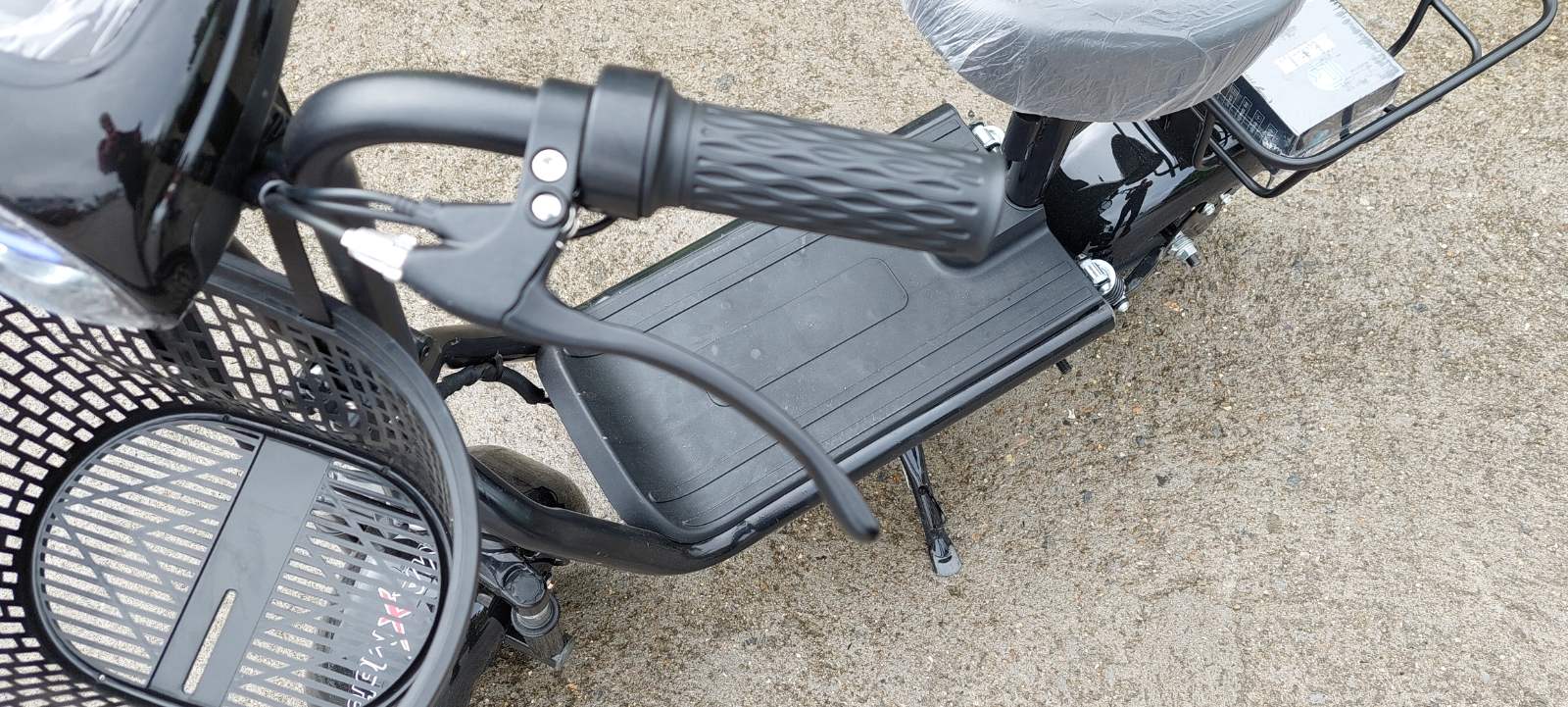 Захранван от дълготрайна акумулаторна система от 48V (четири по 12V) батерии ръчно задвижвана задна спирачка,
