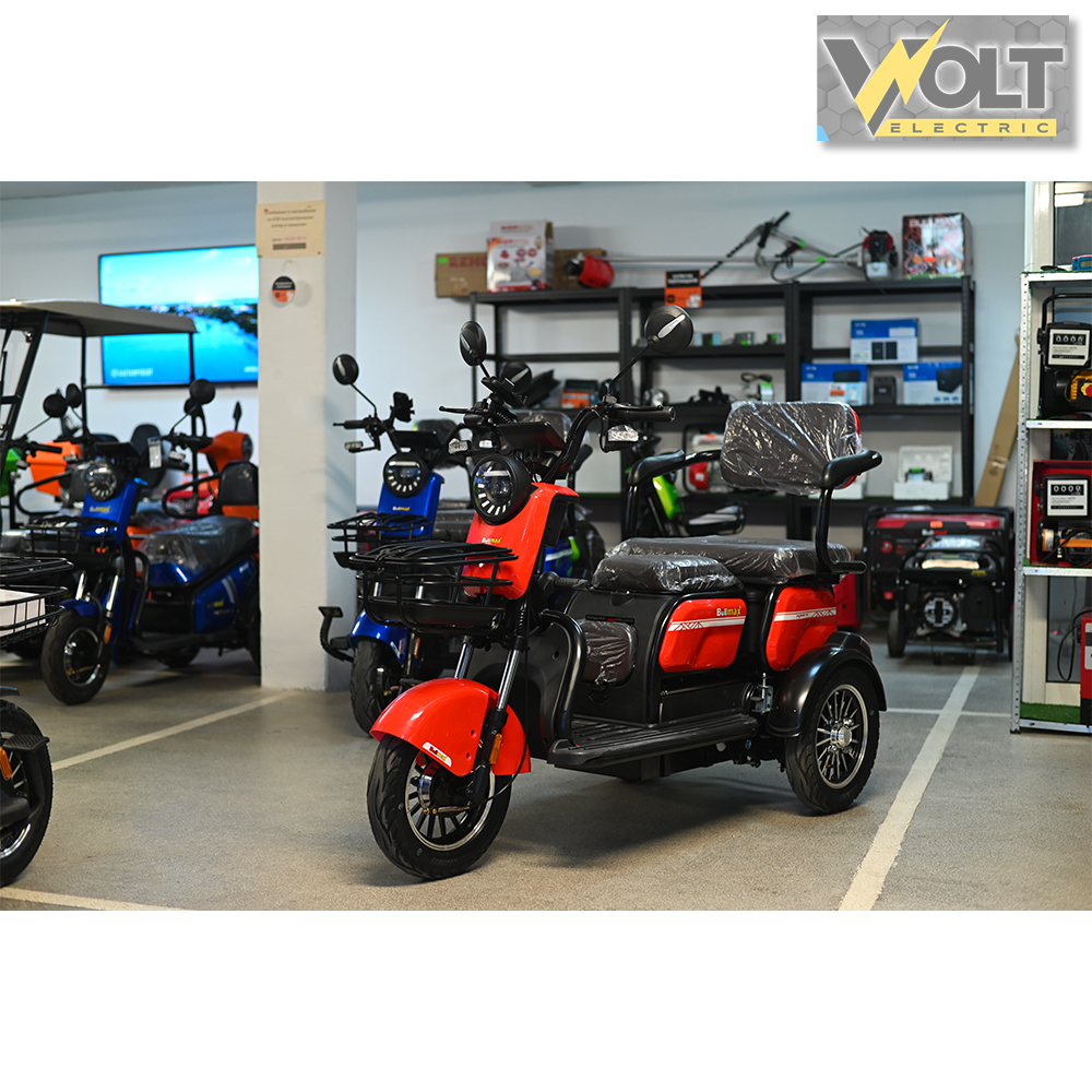 *Този модел има възможност за добавяне на покривна конструкция с предно стъкло и чистачка на ст-ст +249лв! При закупуване подарък страници, за да можете да използвате триколката при дъжд, сняг или студено време!