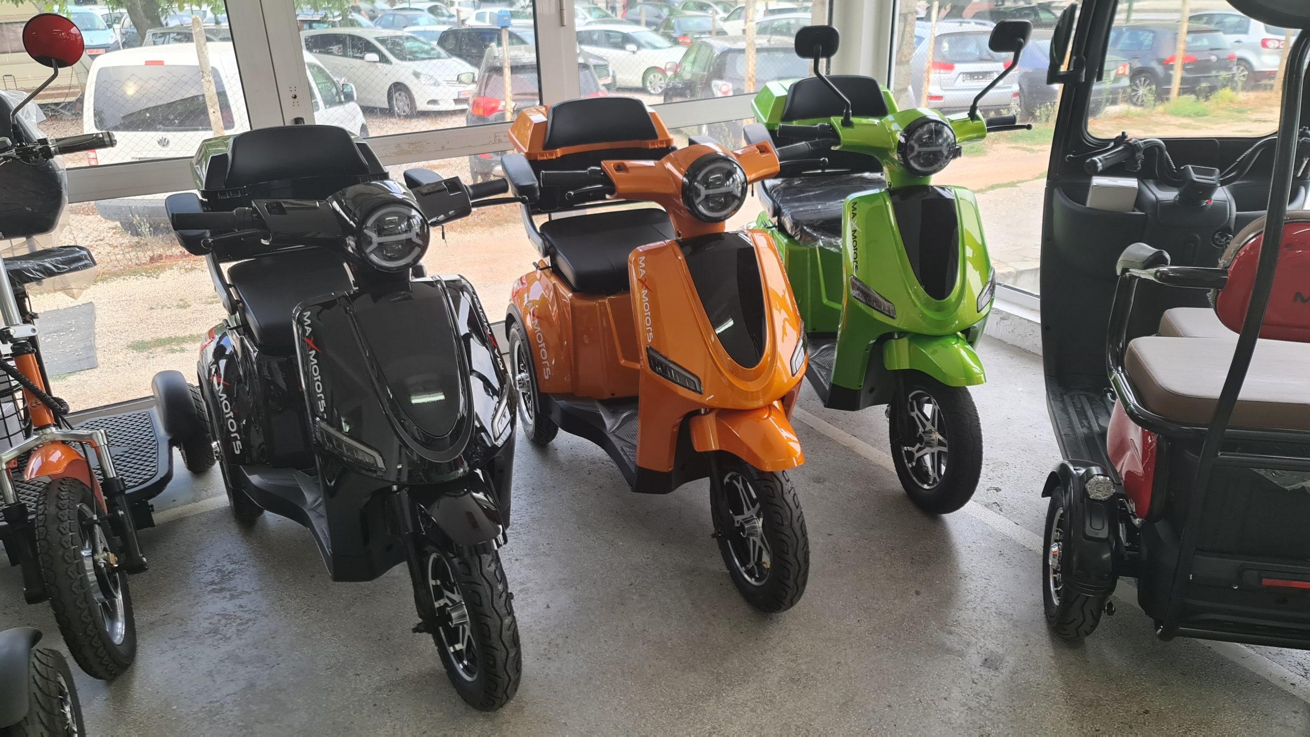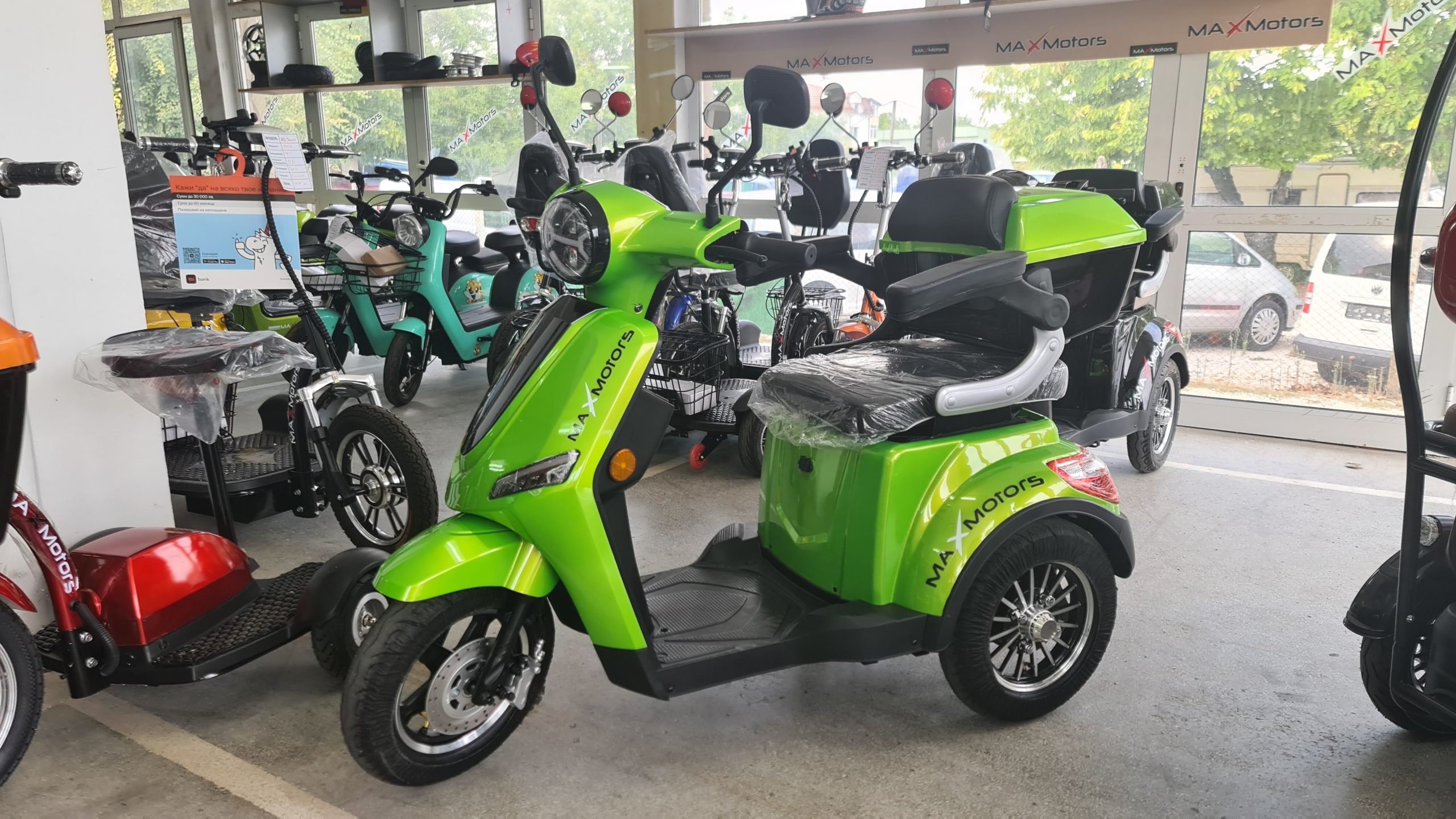 Eлектрическа триколка Max Motors FM1 1500W. Тези триколки са с подсилен заден мост, подобрен диференциал и допълнителни малки колела против преобръщане. В съчетание със корпуса от ABS пластмаса, нов вид контролер, отговарящ за всички команди от водача. Към всички плюсове на триколката са добавени дискови спирачки и пета батерия. Усетете удоволствието от разходката с електрическа триколка.