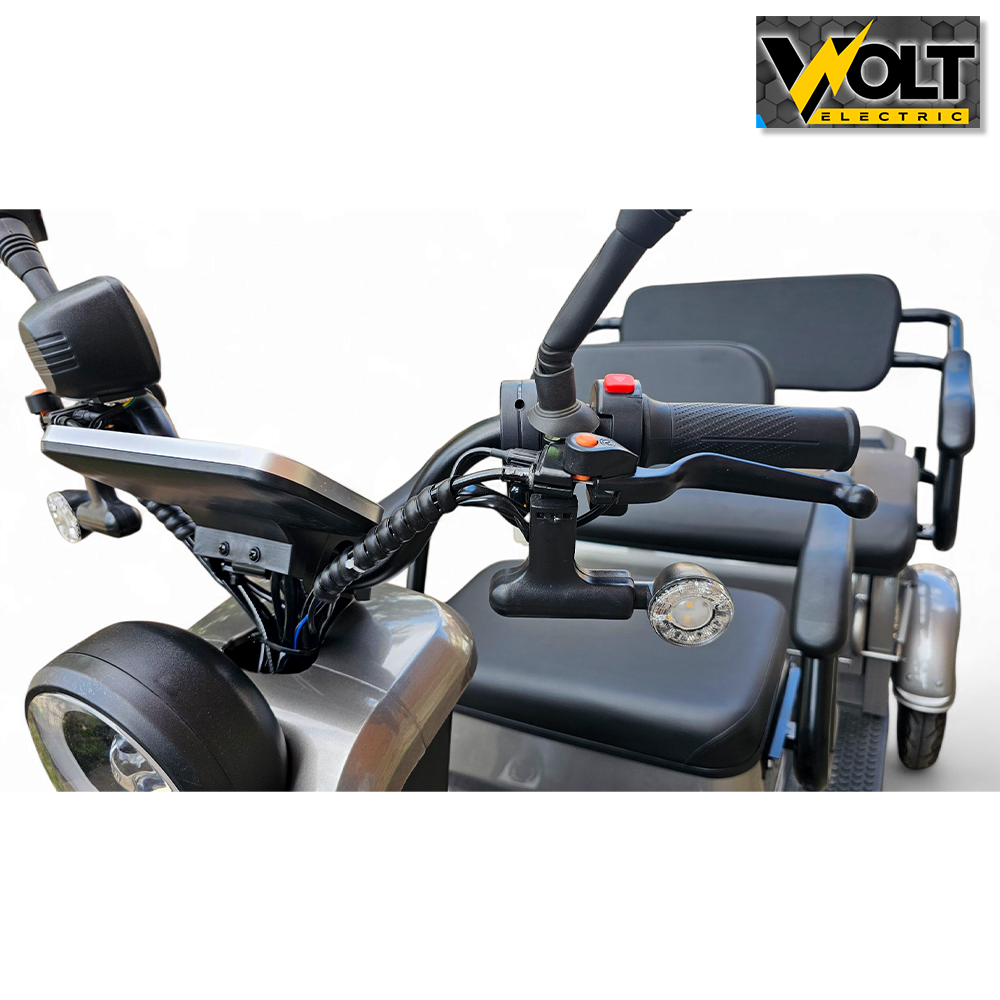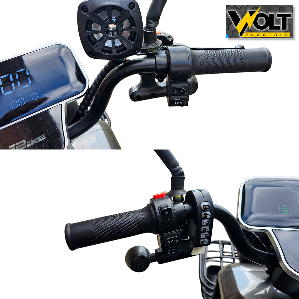 Електрическа триместна карго товарна триколка BULLMAX B10. Триколката е без аналог на пазара. Предназначена е за един водач и двама пасажера. Триколката разполага с предна кошница, заден багажник и след вдигане на задната седалка се оформя карго отделение за багаж. Изключително маневрена и мощна със задно предаване и диференциал. Триколката разполага със пълна светлинна окомплектовка – габарити, преден LED фар, задни LED стоп светлини, предни и задни мигачи.