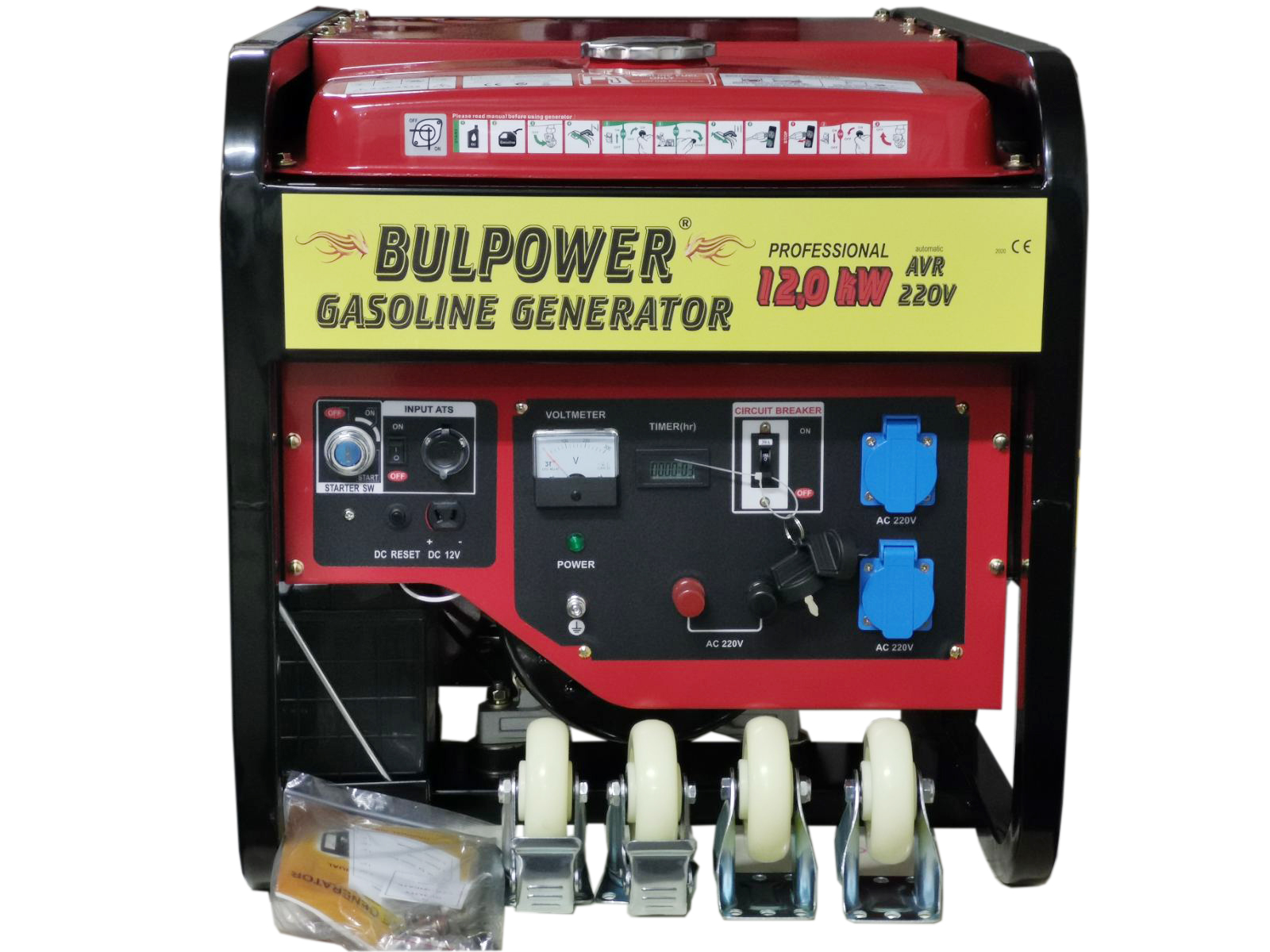 В нашите генератори система следи за нивото на заряд на акумулатора и при нужда го дозарежда до нужния заряд, за да може всеки път генератора да стартира безупречно. Когато генератора не е превключен на режим автоматика, паленето на генератора е безключово- натиска се бутон за стартирането му, който е на управляващото табло. Генераторите са с медни ротори и статори и са оборудвани с автоматичен смукач. Двуцилиндров V-образен двигател с въздушно охлаждане, 20 конски сили, работна честота: 50 Hz. Вграден AVR /Automatic Voltage Regulator/ вградена платка за автоматично регулиране и стабилизиране на напрежението могат без проблем и без никакви смущения да работят всякакви прецизни електроуреди като LED, LCD и Plasma телевизори, компютри, непрекъсваеми захранвания (UPS-и) и много други подобни. Автоматичен предпазител против претоварване на генератора, автостартер с ключ и акумулатор, транспортна рамка с 4 колела, две от които са със стопер машинка. Има 2 броя изходи за 220V и един изход за 12V.