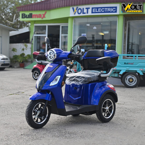 Eлектрическа триколка за възрастни и трудноподвижни лица BULLMAX B1 CE LED. Тя се предлага с някои подобрения от предходния модел – луксозно кресло и повдигаеми подлакътници, плавен старт, LED светлини, снабдена е с три степени на мощност. Изработена е от висококачествени материали, има алуминиеви джанти, с размер 10″. Има възможност за сертификат и регистрация в община или КАТ /при необходимост/.
